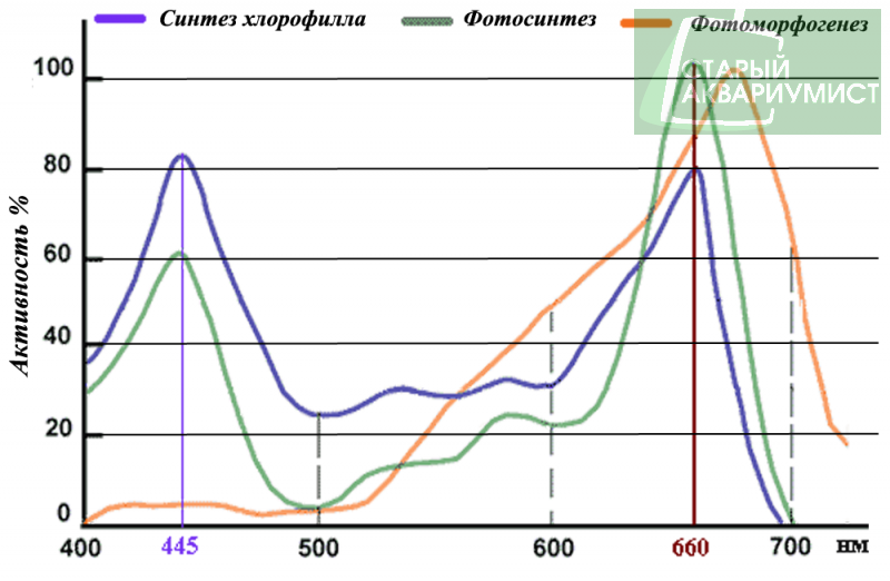 Тимирязев доказал, что источником энергии для фотосинтеза служат преимущественно красные лучи спектра, на что указывает спектр активности фотобиологических процессов, где наиболее интенсивная полоса поглощения наблюдается в красной, и меньше – в сине-фиолетовой части.